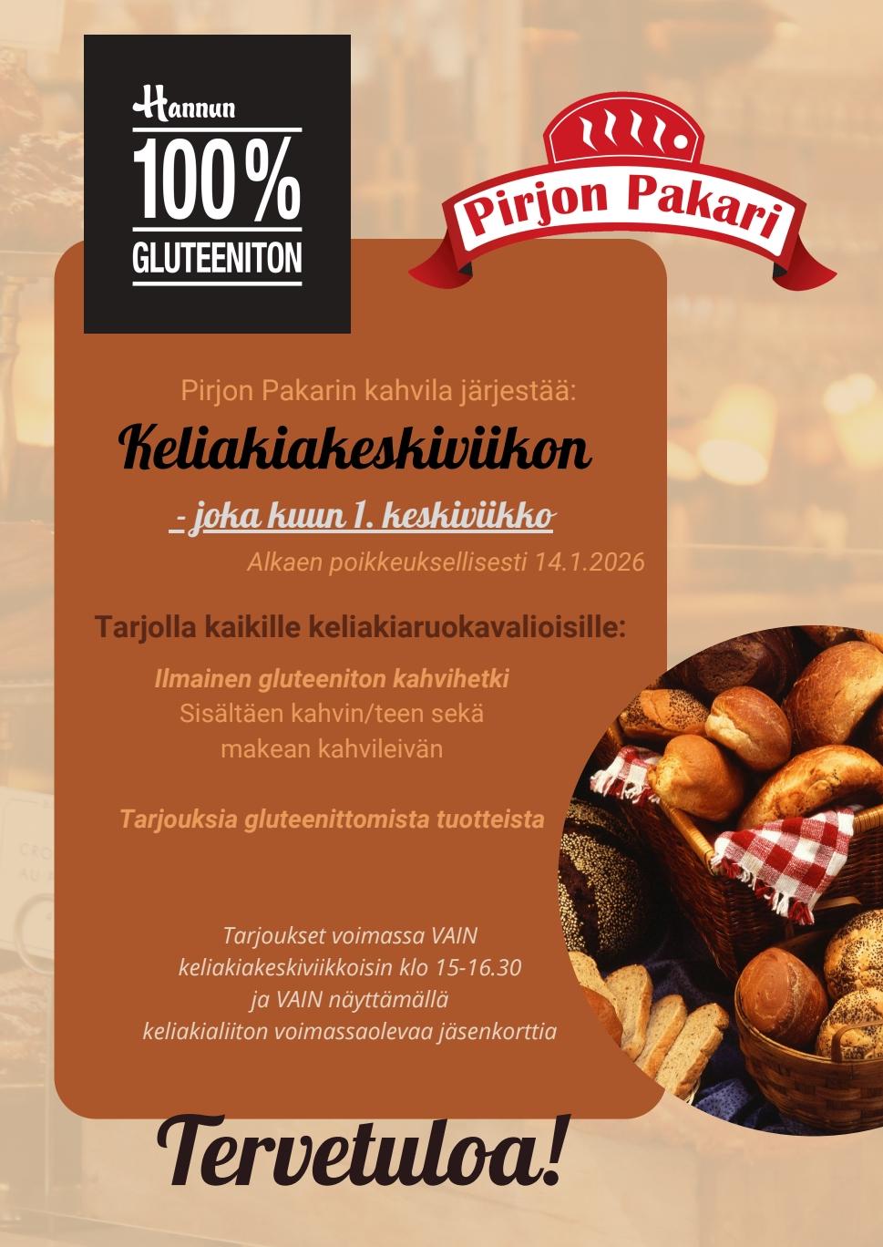 Keliakiakeskiviikot Pirjon Pakarin Raision (Pernontie 2) ja Turun (Yliopistonkatu 14) kahviloissa joka kuun ensimmäinen keskiviikko! Jäsenkorttia näyttämällä ilmainen kahvi+kahvileipä sekä tarjouksia…