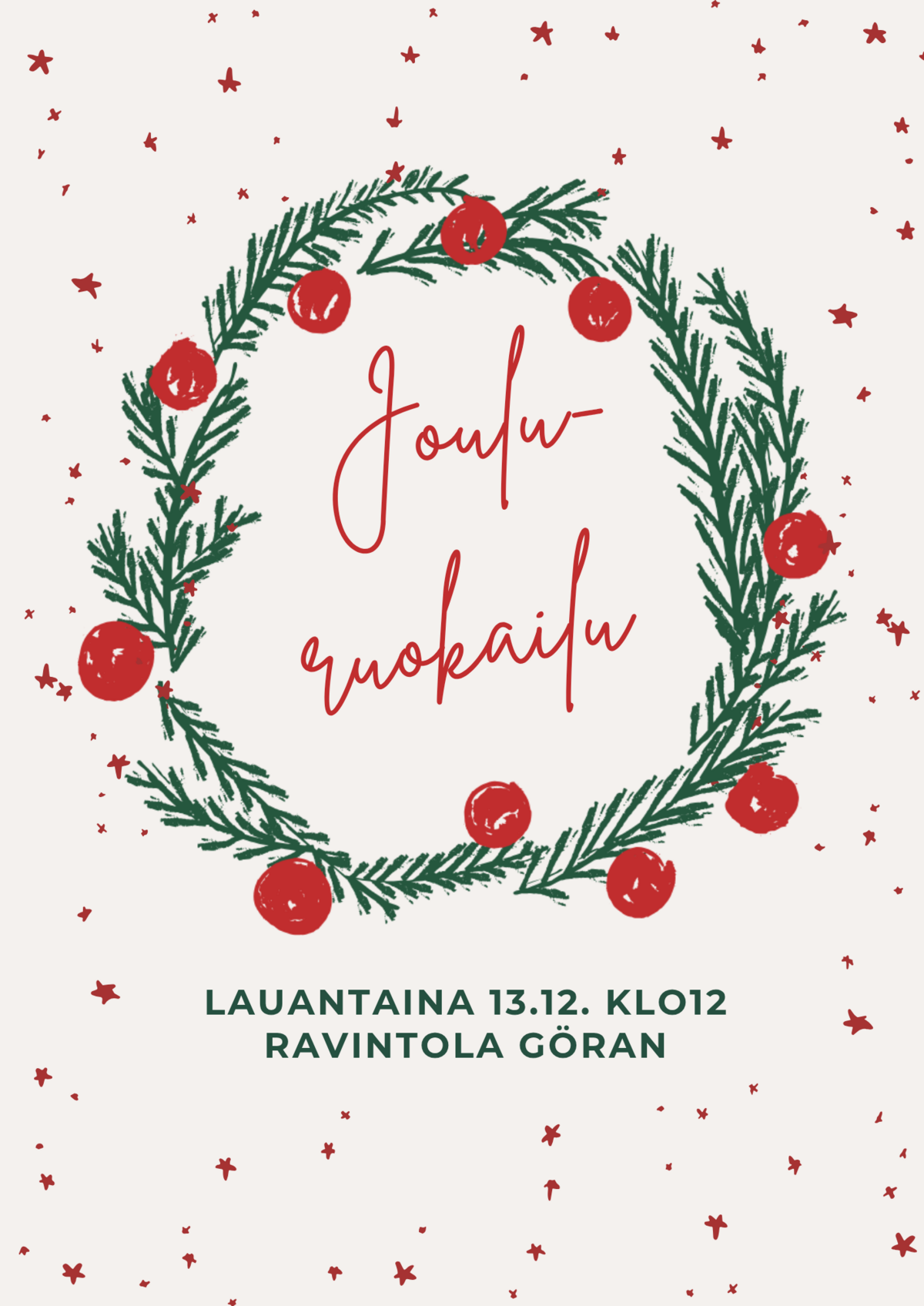 Yhdistyksen jouluruokailusta nautitaan Ravintola Göranissa Forum Marinumilla lauantaina 13.12. klo12